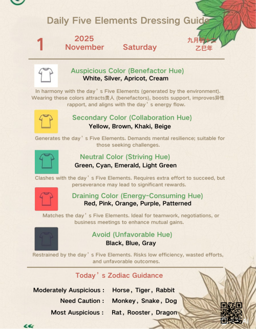 Five Elements (FengShui) Color Dressing Guide 1/November/2025